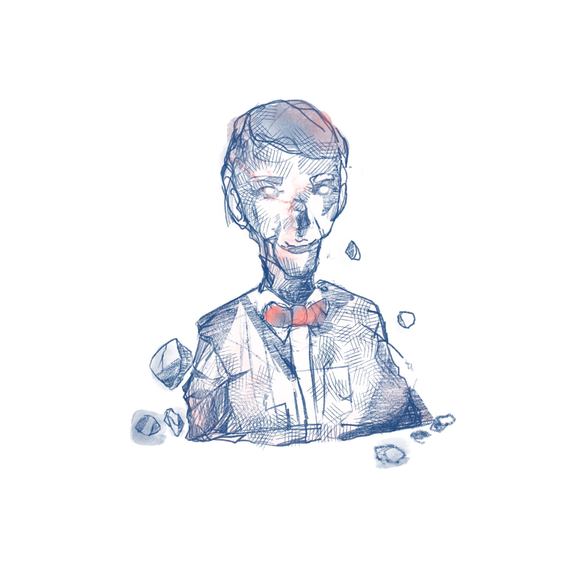 It was Bill Nye, before the force of my imbecilic impact chipped off most of his nose and left ear. Insurance is so not gonna cover this.