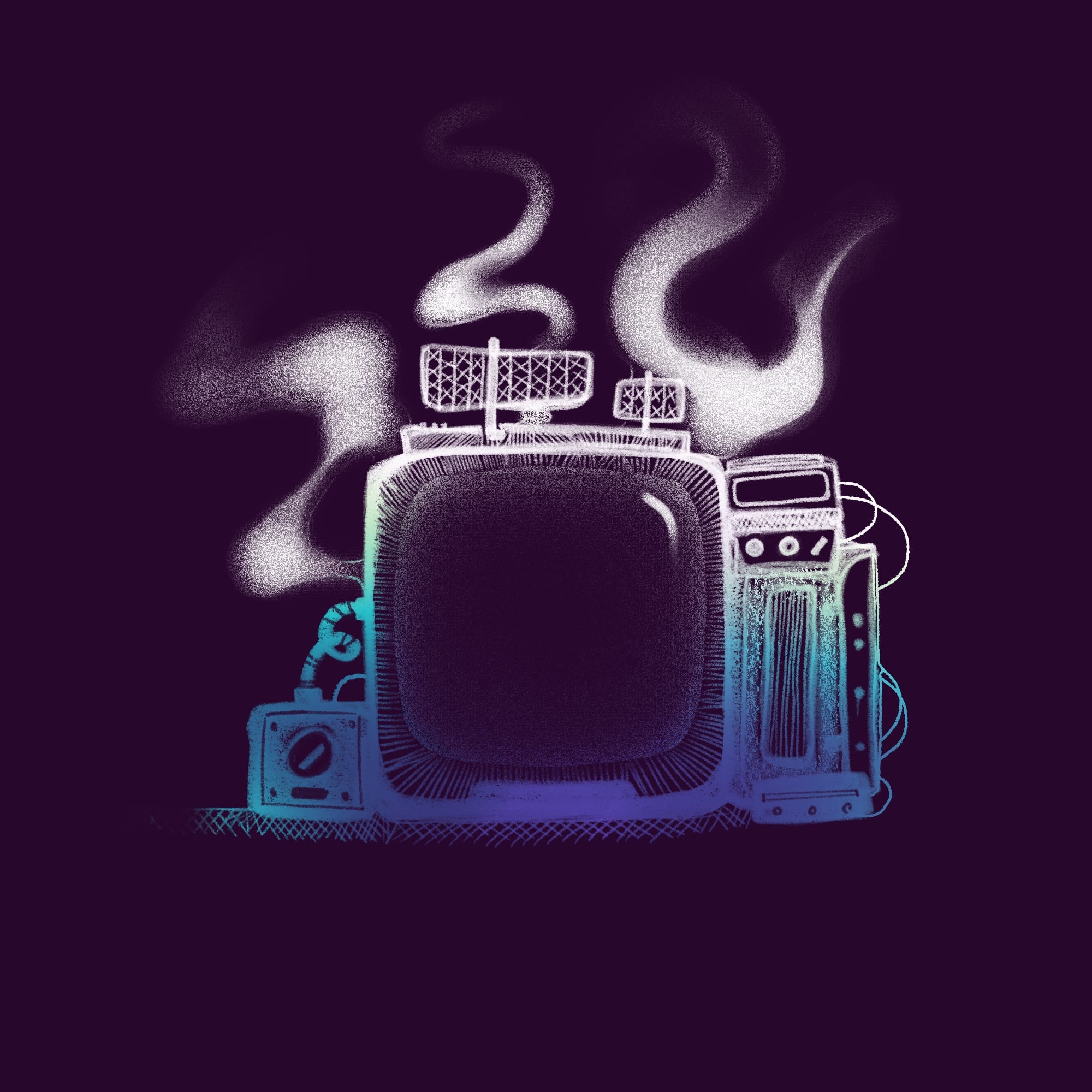 The screen shifted from white noise into a gray static that seemed to blur slowly before switching back to the abstract display of a TV with a bad signal.